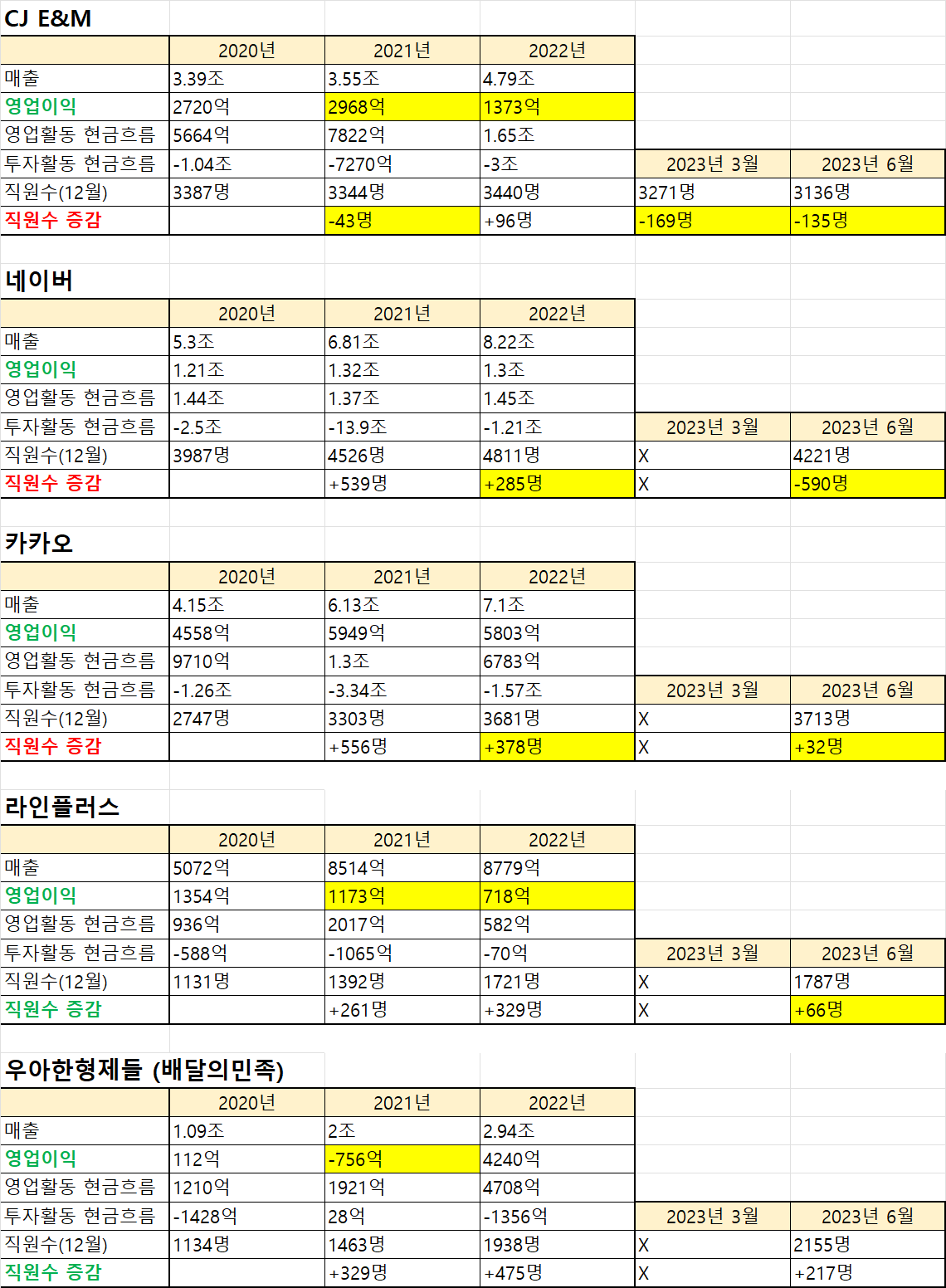- 조사를 하고 보니, 괜히 네카라쿠배의 명성이 있는 것이 아니네요. 네이버와 카카오, 라인, 배민은 매출도 증가하고 영업이익도 탄탄합니다.