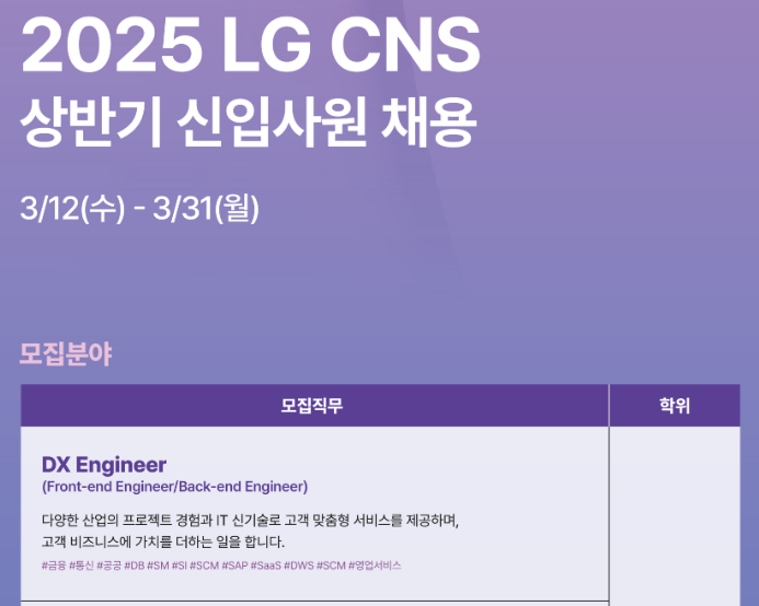 2025년 하반기 LG CNS 채용 공고에 큰 바람이 불어서, 제가 등장해봤습니다!